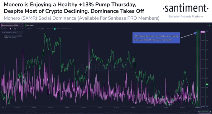 Весной прошлого года криптовалюта достигала $513, тогда же рост ее стоимости сопровождался всплеском упоминаний XRM в социальных сетях.