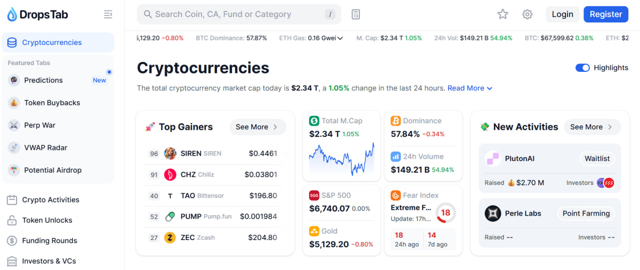 Dropstab сочетает функции аналитики рынка и отслеживания аирдропов. Пользователи могут следить за новыми проектами и одновременно проверять потенциальные награды.