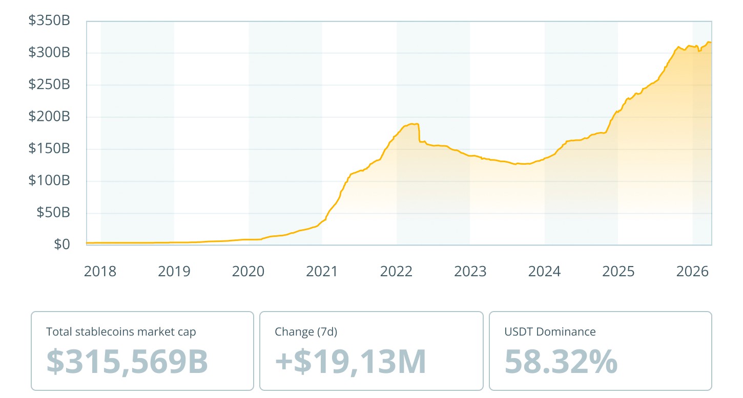 По данным DefiLlama, к марту 2026 года рынок разросся примерно до $314 млрд. Причём рост ускорился после 2025 года, когда месячный объём транзакций почти дотянул до $969,9 млрд. Сейчас рынок уже на пороге новой планки, аналитики ждут более $1 трлн в месяц к концу 2026 года.