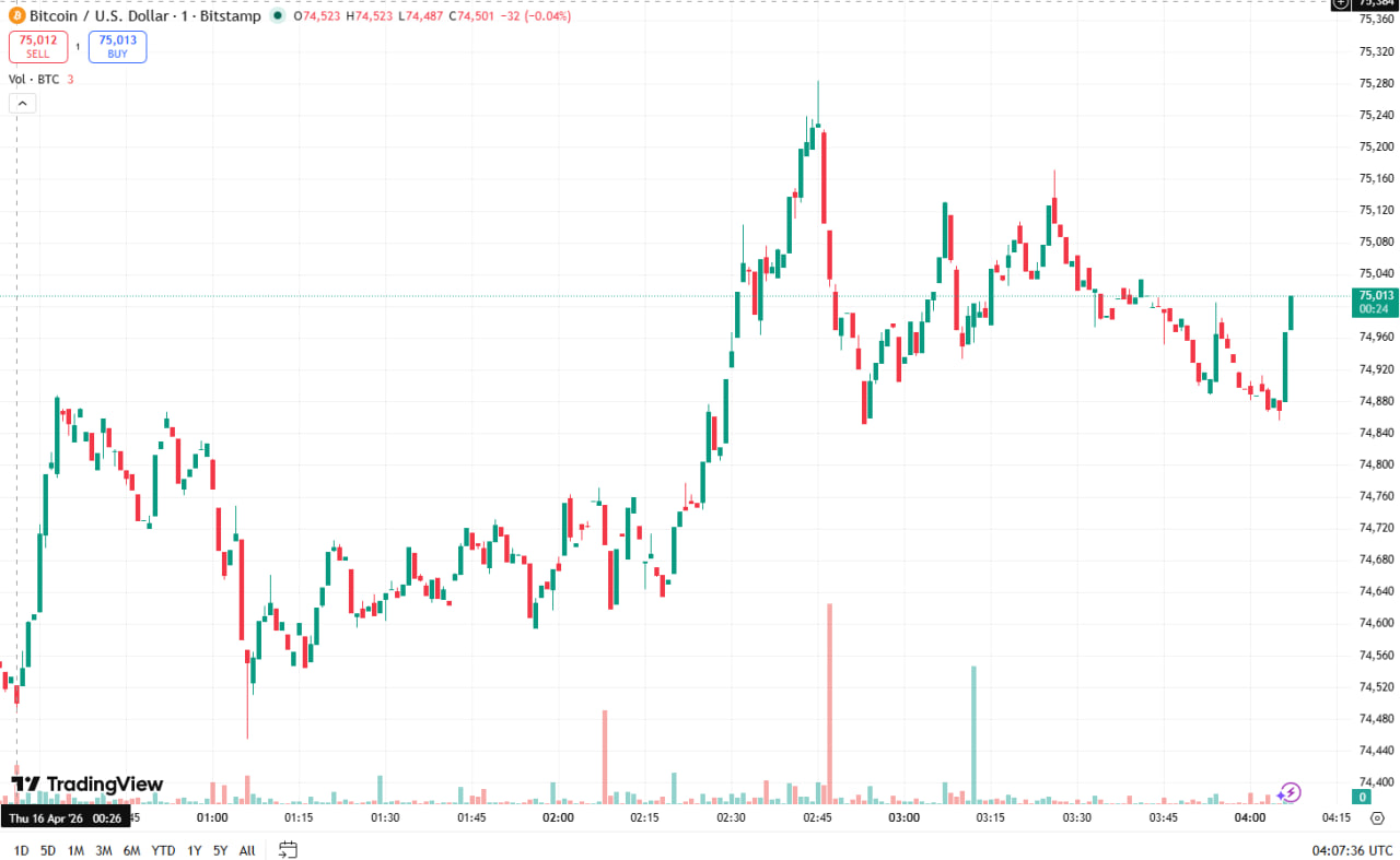 На этом фоне биткоин продолжил рост и протестировал уровень $75 000. За последние две недели актив прибавил около 10%, постепенно восстанавливая позиции после волатильного начала месяца.