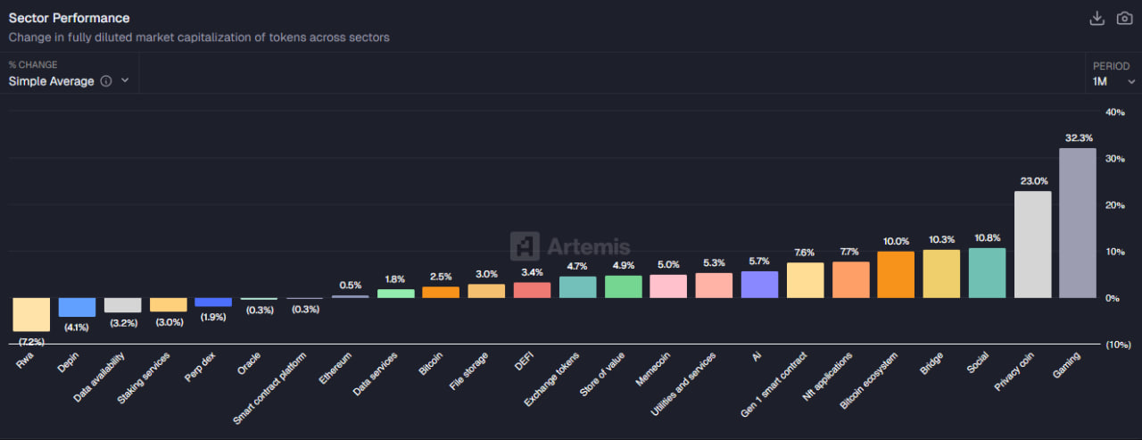 Интерес к игровым токенам возвращается. Аналитика Artemis показывает, что сектор гейминга стал одним из лидеров рынка с начала года.